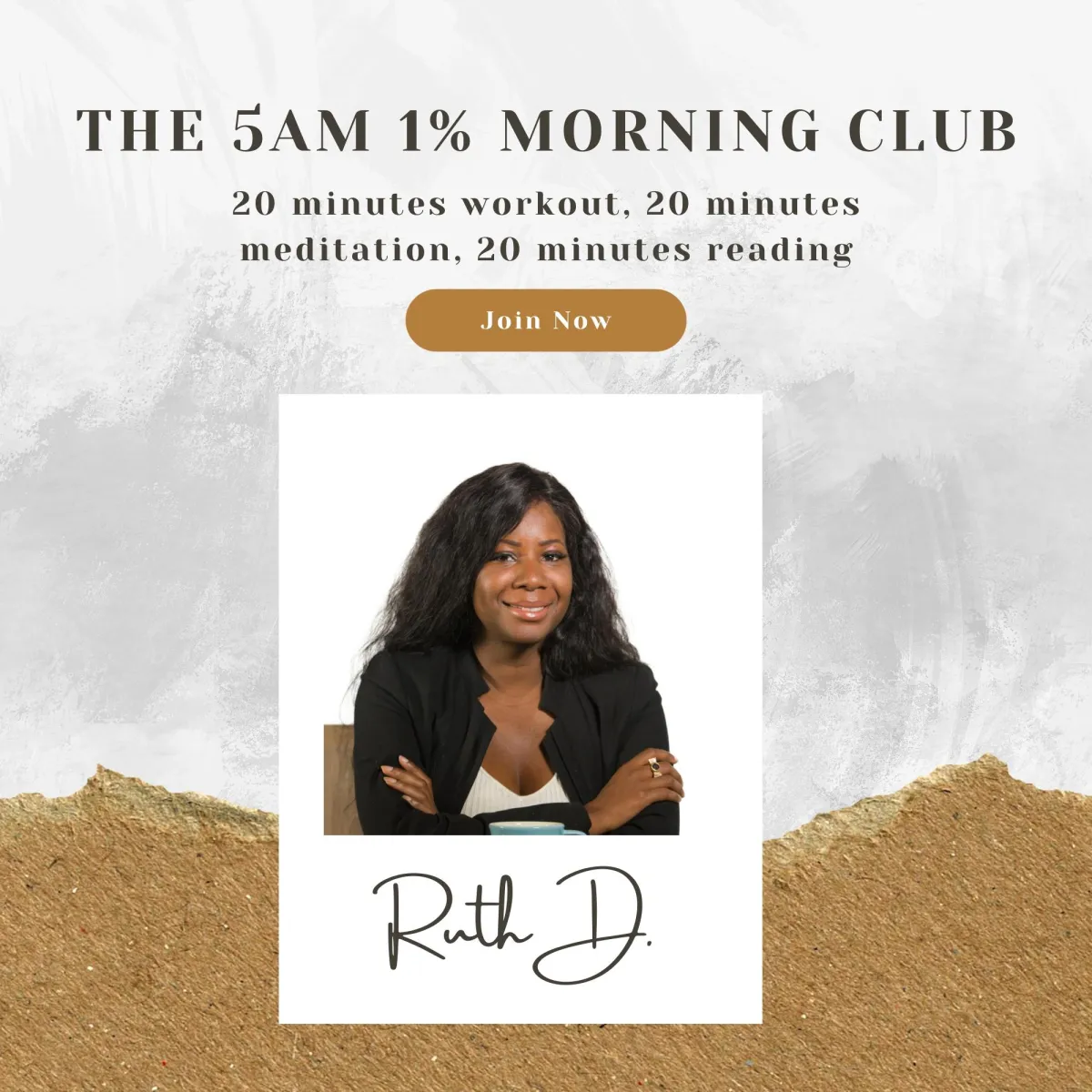 The 5am 1% Morning Club (20 minutes workout, 20 minutes meditation, 20 minutes reading)